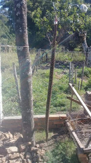 or volta de 9h30 deste domingo, 1º de março, uma família que reside no Povinho, em Maçambará, levou um susto com uma cobra jararaca-cruzeira de cerca de 1,60 metros de comprimento.